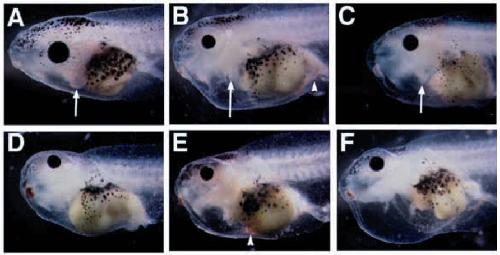 (A,C,E) Stage 35 control embryos injected with 250 pg lacZ mRNA
