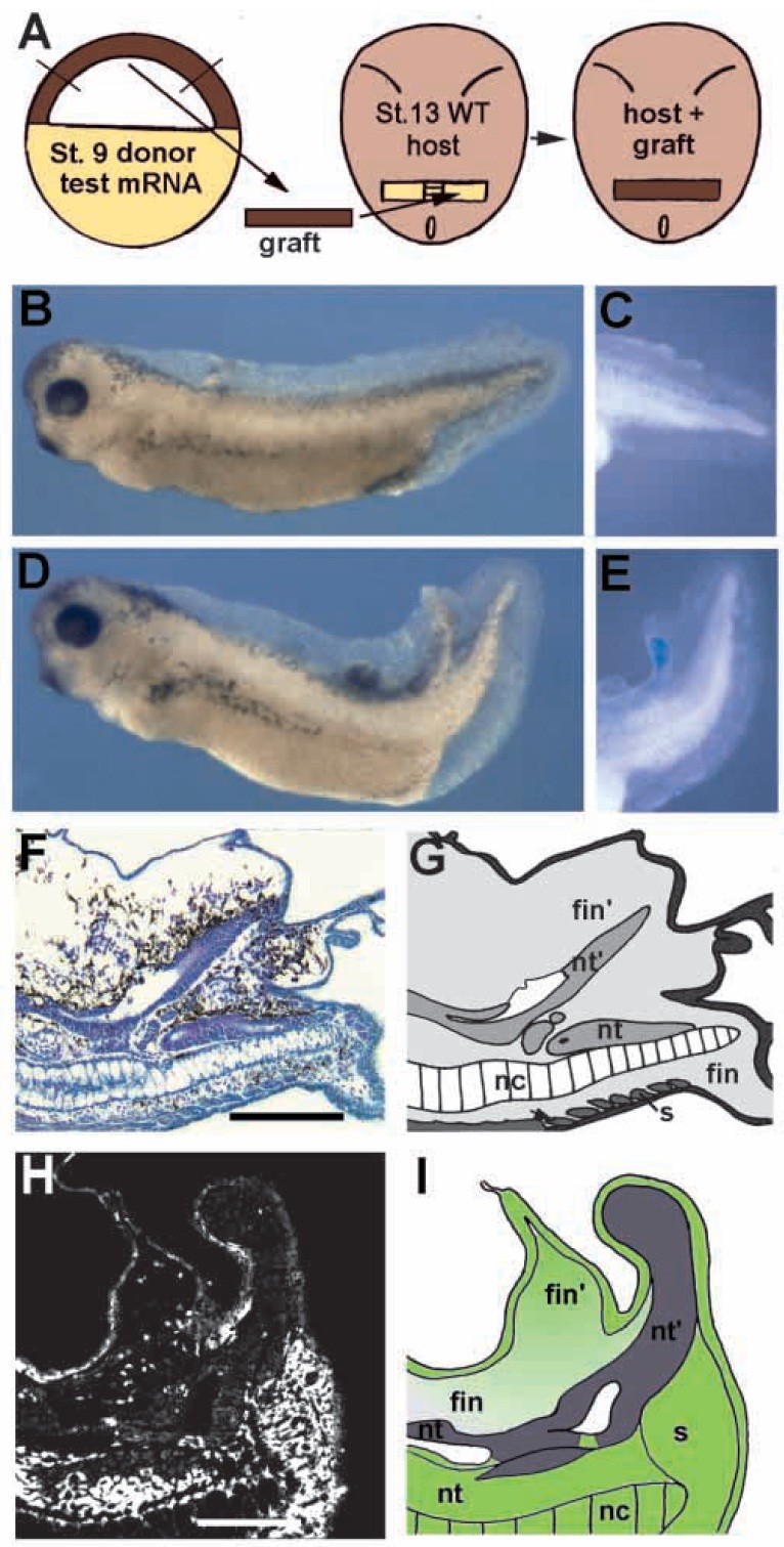 mesenchyme is mixed. fin, host fin; fin¢, ectopic fin; nt, neural tube;