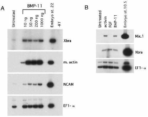 actin induction by BMP-11. EF1-a is a loading and reverse transcription control and untreated animal caps serve as a negative control.