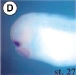 FoxE1 ( forkhead box E1 (thyroid transcription factor 2) ) gene expression in Xenopus laevis embryos, NF stage 27, as assayed by in situ hybridization, lateral view, anteriorleft, dorsal up.