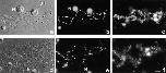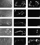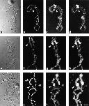 Figure 5. Splicing is not required for ADAR1 localization. (a and d) DIC images, (b and e) DAPI staining, and (c and f) ADAR1 localization detected by staining with SAT4 antiserum in the fluorescein channel. (a–c) Staining of bivalent no. 3 from an untreated oocyte shows localization of ADAR1 on the RNP matrix of regular loops and on the special loop. (d–f) 24 h after injection of the U2b oligo transcription has resumed giving rise to prominent loops (d). (f) Staining with SAT4 antiserum shows the presence of ADAR1 on the loop matrix and on the special loop on bivalent no. 3. Bar, 10 μm.