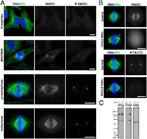 Aurora A phosphorylation of TACC3/maskin is required for centrosome-dependent microtubule assembly in mitosis.