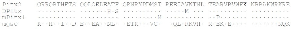 Drosophila Pitx (Dpitx), mouse Pitx1 (mPtx1) and mouse goosecoid (mgsc). Only positions that differ from Pitx2 are shown. The lysine