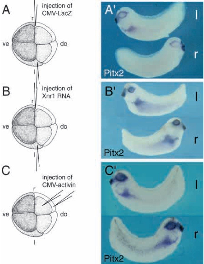 cell stage with a Pitx2 DNA expression construct into both dorsal