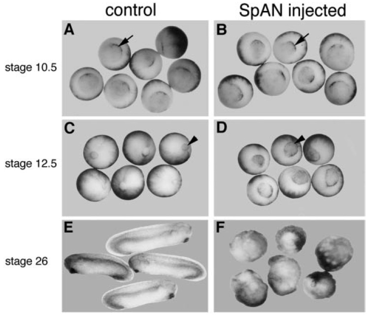FIG. 1. SpAN disrupts gastrulation and dorsoanterior development.