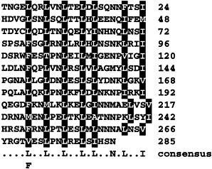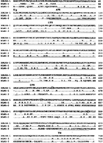 Alignment of the LRR domains of XNLRR-1. Consensus sequences are highlighted and also shown below