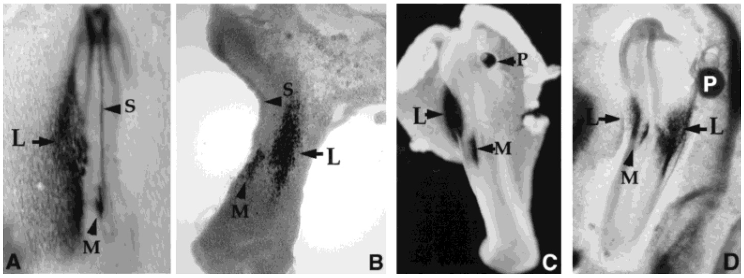 directly adjacent to Shh expression (S arrowhead), and a larger lateral domain some distance away (L arrowhead). B. Explants sometimes