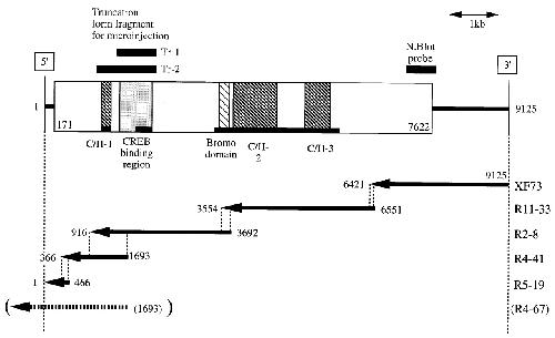 model of full-length Xenopus p300/CBP cDNA. The open white box indicates the Xenopus p300/CBP protein coding region and