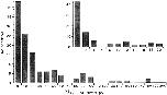 Figure 3. Frequency distribution of hIKs patch currents. Current was measured at the end of a 5-s depolarization to +50 mV in each of 128 patches, and histograms were constructed. The inset shows an expanded histogram, where the bin at zero represents the 43 patches that showed no IKs current. |