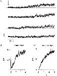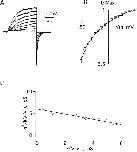 Figure 10. Currents recorded in CHO cells expressing KvLQT1 or IKs channels by whole-cell configuration. Cells were clamped to −80 mV, and then depolarized for 6 s to test potentials from −60 to 10 mV (KvLQT1) or −60 to 50 mV (IKs) in 10-mV steps. The solutions were (mM): bath: 20 KCl, 100 NaCl, 1 CaCl2, 2 MgCl2, 10 HEPES, pH 7.5; pipette: 120 KCl, 2 MgCl2, 2 EGTA, 10 HEPES, pH 7.5. (A) KvLQT1 channels. (B) IKs channels. (C) Variance–current relationships of data in A (□, KvLQT1 channels) and B (▪, IKs channels). The calculated conductances in these patches were 2.2 and 8.2 pS, respectively.