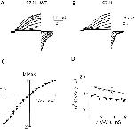 Figure 7. Current–variance relationships of IKs channels formed with wild-type and S74L minK subunits. (A) Family of currents recorded in a patch excised from an oocyte coinjected with KvLQT1 cRNA and a 1:1 mixture of wild-type and S74L minK cRNAs. The patch was clamped at −60 mV and depolarized from −20 to 100 mV in steps of 10 mV. (B) Family of currents recorded from oocytes coinjected only with KvLQT1 and S74L minK cRNAs. The protocol was as in A with steps from −20 to 90 mV. (C) Current–voltage relationship of peak tail currents measured for S74L IKs channels, mean ± SEM for three patches. (D) Current–variance relationships computed from the patches in A (▿) and B (▾); the conductances calculated in these patches were 14 and 8.7 pS, respectively.