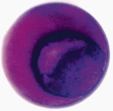 cebpb (CCAAT/enhancer binding protein beta) gene expression in Xenopus laevis embryo, assayed via in situ hybridization, NF stage11, vegetal view, dorsal upper left.