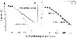 Figure 7. The dependence of protection on blocker concentration. The rate constant for the reaction of MTSEA in the presence of ACh at 10× EC50 and of the indicated concentration of QX-314 is divided by the rate constant in the presence of ACh but absence of QX-314. The mutants are αV255C (•) and αS248C (▪). The arrows mark the interpolated values of the relative rate constants at the IC50s for QX-314 inhibition of the ACh-induced current (Table I).