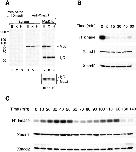 Figure 6. Xmad1 abundance is constant throughout the cell cycle. (A) Specificity of anti-Xmad1 antibodies in immunoblots of frog egg extracts (lanes E), frog cultured cells XTC (lanes X), and HeLa cells (lanes H). An affinity-purified anti-Xmad1 antibody (lanes 4–9) or the same antibody preblocked with recombinant Xmad1 protein (lanes 1–3) were used. Lanes 1–6, egg extracts or cell lysates. Lanes 7–12, anti-Xmad2 immunoprecipitates prepared from egg extracts or cell lysates were immunoblotted with anti-Xmad1 (lanes 7–9) or anti-Xmad2 (lanes 10–12) antibodies. (B) CSF-arrested extract (time 0) was incubated with calcium for the time indicated on top, and immunoblotted for Xmad1 (middle) or Xmad2 (bottom). Top, histone H1 kinase assay. (C) Immunoblots of cycling extracts using antibodies specific to Xmad1 (middle) or Xmad2 (bottom). Mitosis occurs at ∼50 and 120 min as determined by histone H1 kinase assay (top) and by the nuclear morphology (data not shown).