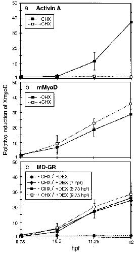 (CHX) from 9.25 to 9.75 hpf, show no increase in XMyoD