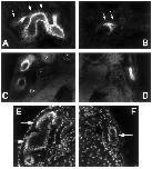 rhodamine-conjugated secondary antibody, and the cell boundaries of tubular epithelial cells (indicated by arrows) are visible due to