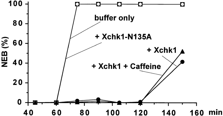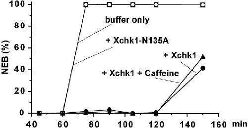 The Xenopus Chk1 protein kinase mediates a caffeine-sensitive pathway of checkpoint control in cell-free extracts.
