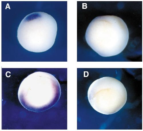 the marginal zone of both blastomeres at the two-cell stage. The embryos were fixed at gastrula stage 10. One-half and whole mount in situ