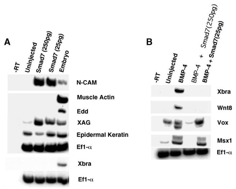 marker. (B) Smad7 blocks BMP-4-mediated induction of