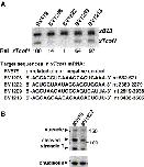 Down-regulation of xtreacle expression using antisense oligodeoxynucleotides. (A) X. laevis oocytes were microinjected with antisense oligodeoxynucleotides (32 ng per oocyte) and total RNA was isolated after 24 h. RT-PCR was used to determine the levels of expressions of mRNA for Xenopus nucleolar protein B23 (xB23) and Tcof1 (xTcof1) in the same reaction mix containing 50 ng total RNA. One oligo in each pair of primers was 32P-end labeled. The phosphorous image signals were analyzed using the ImageQuant software and the level of xTcof1 expression, after normalizing against xB23, was calculated relative to the negative control (see numbers below the image). The antisense target sequences in the xTcof1 mRNA are shown below the panel. BV579 is an unrelated oligo used as negative control. (B) Western blot analysis using anti-xtreacle antibody and protein extracts from oocytes incubated for 5 days after microinjection with BV579 control oligo or BV1222 xTcof1 antisense. The membrane was stripped and re-probed with anti-xnucleolin antibody to check protein loading. Numbers on the right refer to molecular weight markers in kDa.