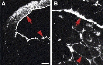 of inner BCR layer (bottom). FN deposits in gaps between apical cells