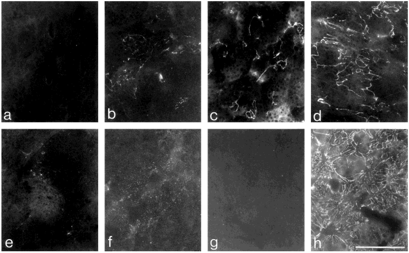 stages 91⁄2 (g) and 101⁄2 (h). All stained with antibody to bovine FN. Same