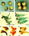 (E) Staining of DAN-injected embryos with the muscle-specific antibody 12/101 shows that muscle is present, but that it is poorly patterned. The bottom of the panel shows a wild-type embryo for comparison. |