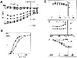Figure 3. Steady state voltage dependency of Na+/Pi transport as a function of Na+ concentration. (A) Typical family of I-V curves obtained from one cell with 1 mM Pi and six Na+ concentrations as indicated (millimolar). Data points are joined for visualization only. (B) Typical dose-response data for the same cell at two Pi concentrations: 1.0 (▪) and 0.1 (□) mM with Na+ as the variable substrate and Vh = −50 mV. Eq. 1 was fit to the data points. For this cell, the fit parameters were: (1 mM Pi) KmNa = 50.1 mM, n = 2.6, Ipmax = 109 mM; and (0.1 mM Pi) KmNa = 89 mM, n = 2.6, Ipmax = 114 mM. (C) Summary of voltage dependence of fitted parameters comparing data for two concentrations of Pi: 1 (▪) and 0.1 (□) mM. Data are shown as mean ± SEM. Only SEMs exceeding symbol size are shown. Data points are joined for visualization only. (C, 1) n = Hill coefficient, (dashed line) n = 3; (C, 2) KmNa = apparent affinity constant; (C, 3) Ipmax/Ipmax(−100) = maximum induced current normalized to the value at −100 mV. |
