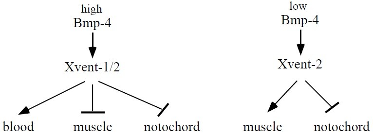 Fig. 9. Model of Xvent gene action in response to different Bmp-4