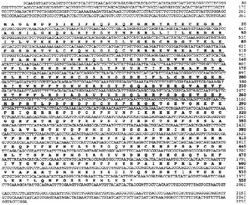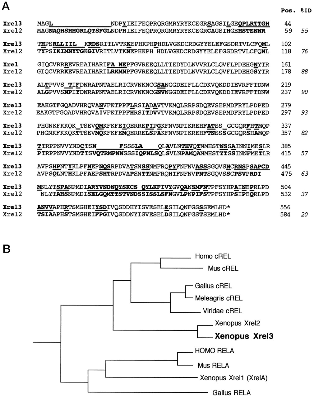 FIG. 1. Nucleotide and predicted protein sequence of Xrel3 cDNA. The rel homology domain is underlined.