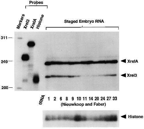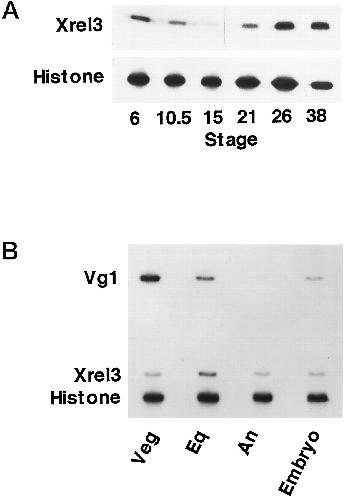 Xrel3. RNA from four embryos was loaded per lane. Histone (H4) was