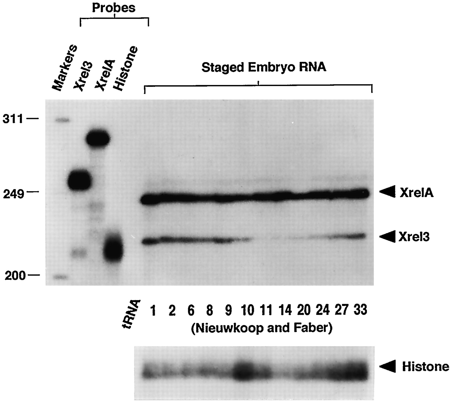 (Nieuwkoop and Faber), and arrow indicates ;3 kilobase Xrel3