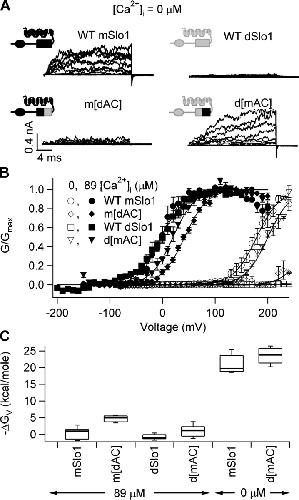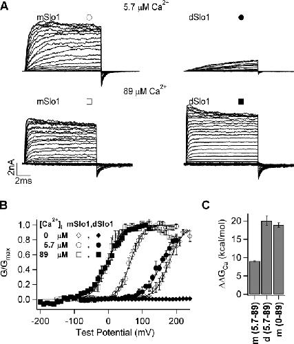 Cui, Allosteric linkage between voltage and Ca(2+)-dependent activation of BK-type mslo1 K(+) channels. 2000, Pubmed
