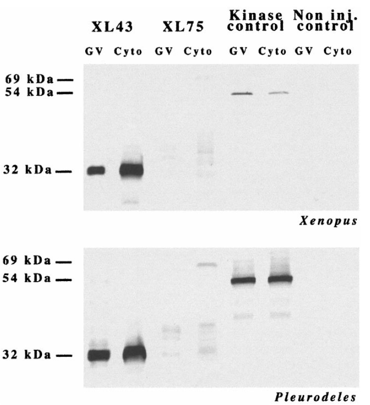 6-myc-XL75 clones were injected into Xenopus or Pleurodeles oocytes