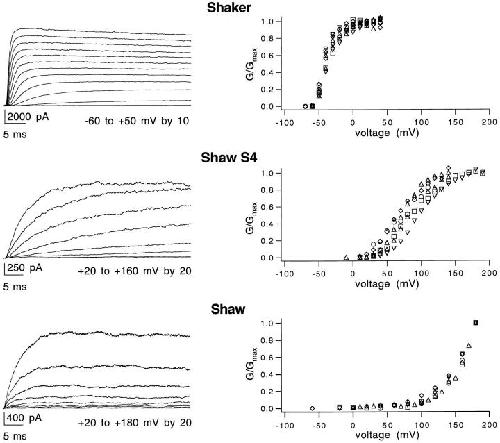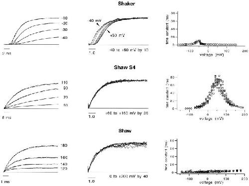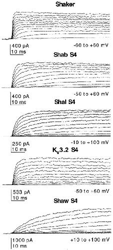 Logothetis, Incremental reductions of positive charge within the S4 region of a voltage-gated K+ channel result in corresponding decreases in gating charge. 1992, Pubmed , Xenbase