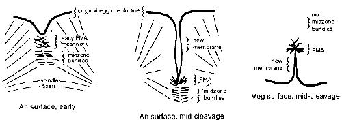 develops directly beneath the early furrow. Discontinuous midzone bundles are found generally deeper in the cytoplasm, between the
