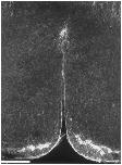FIG. 4. Microtubule distribution in the vegetal portion of first cleavage furrow. Note absence of antiparallel midzone microtubule bundles deep to the FMA. Brightly staining bodies at the vegetal surface correspond to germ plasm islands. Bar 50 um. |