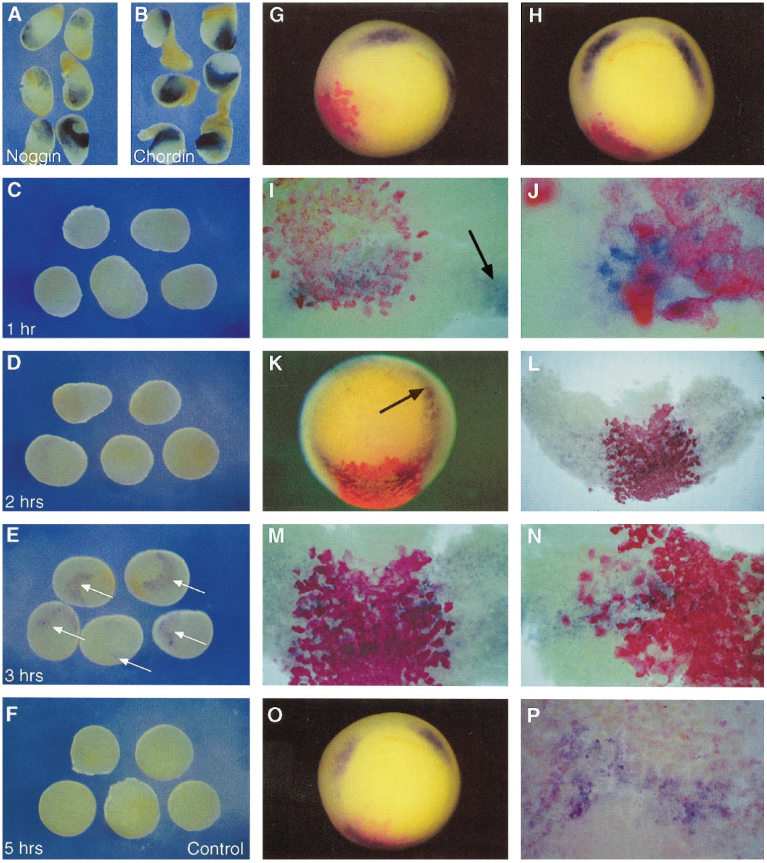marginal zone recombinants. The recombinants were assembled at the early gastrula stage and cultured for 6 h. (CâE) Noggin-expressing