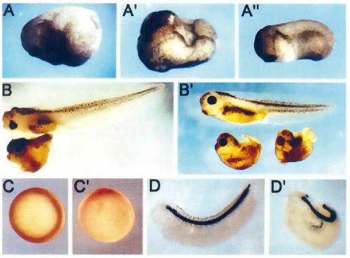 situ hybridizations for the expression of the notochord marker collagen II. fD) Control embryo at stage 32 showing the normal development of the