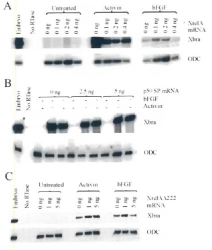 mRNA with 1ng of mRNA encoding h.-a. a specific inhibitor of NF-,.Bproteins. fully rescues the induction of Xbra by bFGF.