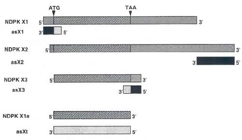 and GI NDPK X3 mRNA. Secllons show the