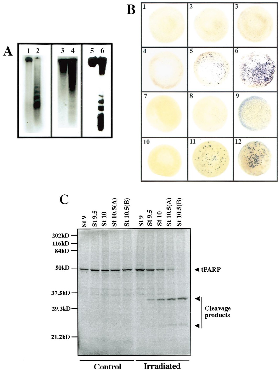 at St. 7. (C) 35S-tPARP cleavage in embryonic extracts from the indicated stages. St. 10.5 (B) represents embryos collected 20 min later than St.10.5 (A).