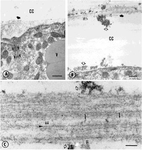 Fig. 8. TEM of the spinal cord of Xenopus embryos. A: Filamentous