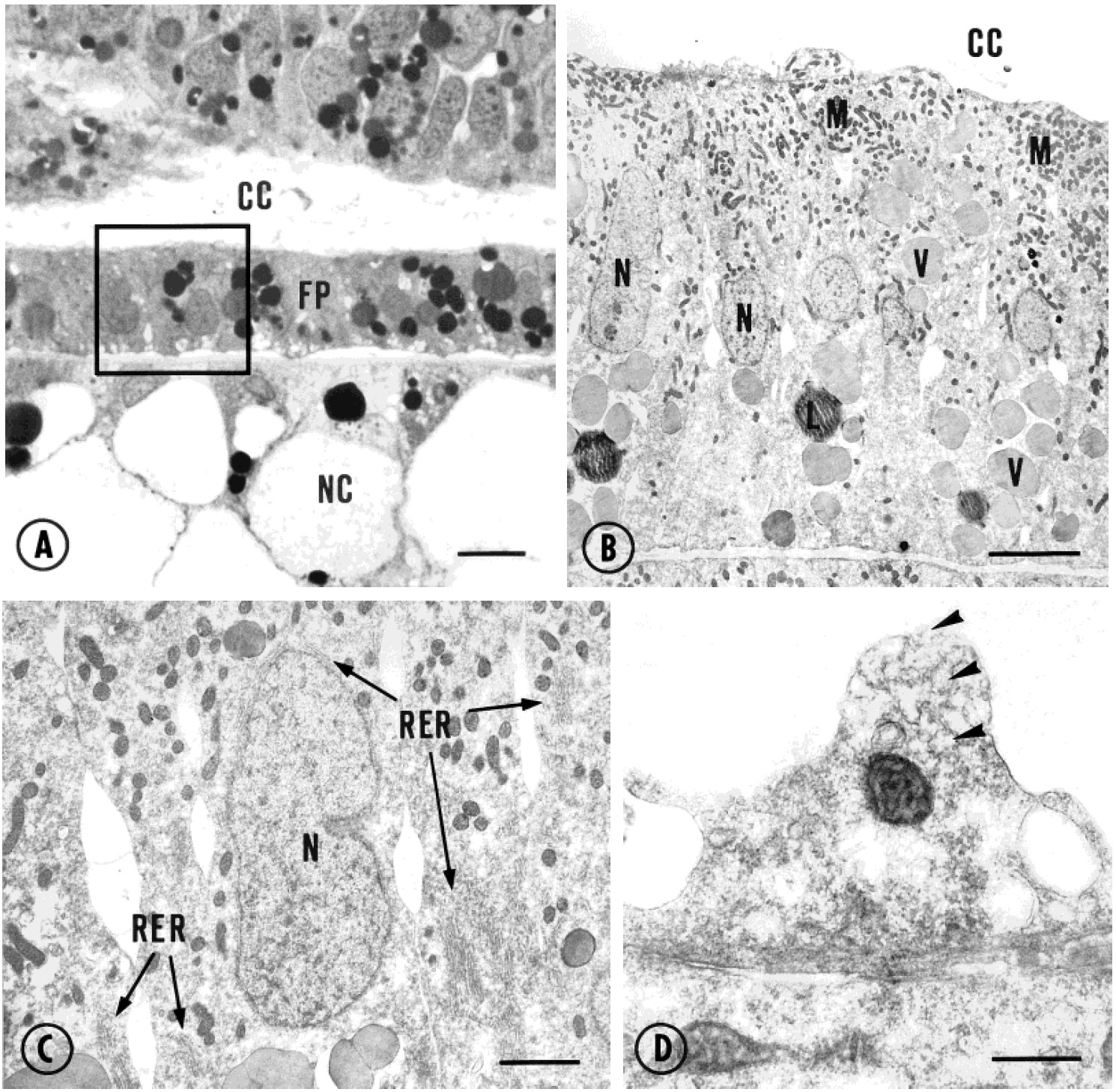 to RF and free surface of FP cells (open arrows). C: Detailed