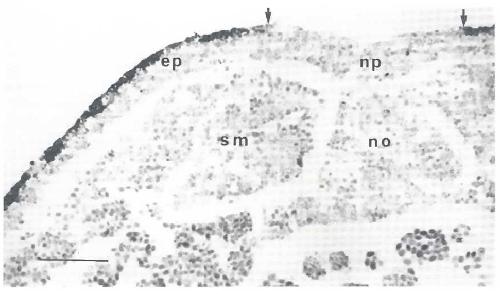 epidermis; np, neural plate; no, notochord,' sm, somite.