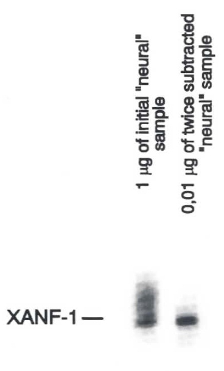 subtraction and hybridized with 32p labeled probe for XANF-l. Note that