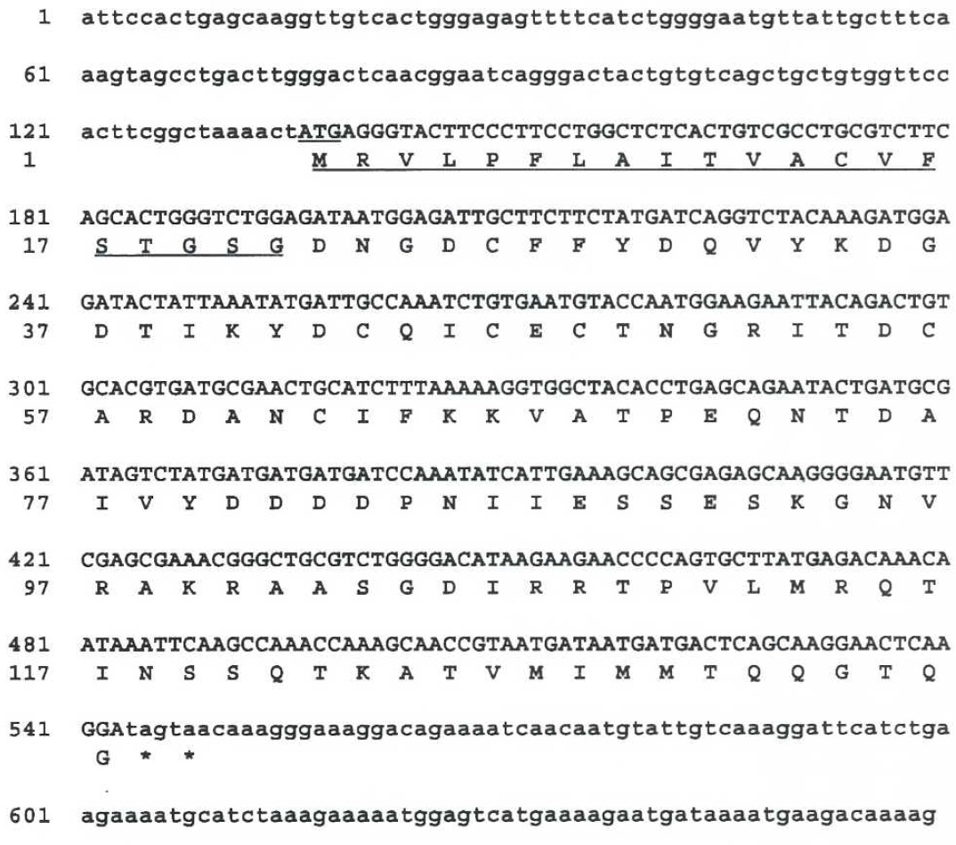 Fig.3. Nucleotide and deduced amino acid sequencesof XEP-1cDNA. TheA TGat the position