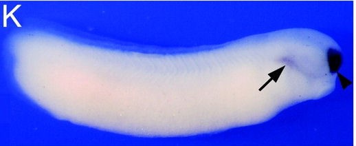 Key: arrow: anterior-dorsal foregut endoderm, arrowhead: olfactory bulb. |