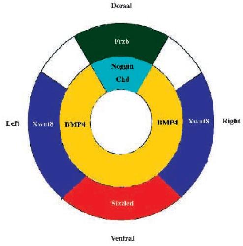 secreted components of the Xwnt8 and BMP4 pathways are shown