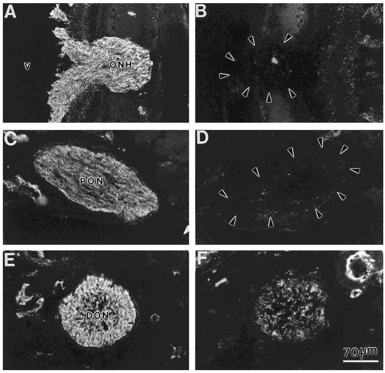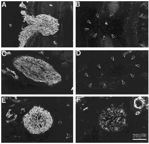 segment of the optic nerve (DON) , near the level illustrated by Figure 1(C). Arrowheads in